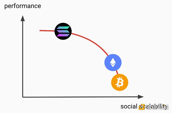 社交可擴展性是以性能為代價的,正如 Nick Szabo 在他 2017 年的文章 [金錢、區塊鏈和社交可擴展性](http://unenumerated.blogspot.com/2017/02/money-blockchains-and-social-scalability.html) 中總結的那樣: