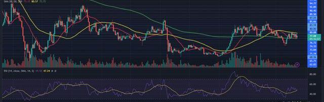 在撰寫本文時,山寨幣的交易價格為77美元。隨著Aave突破74美元的阻力線并將其翻轉為支撐位,代幣開始飆升。上方阻力位在78美元;突破將幫助Aave達到80美元大關。