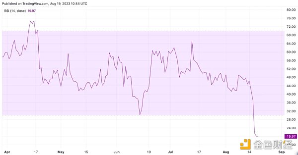 目前,ETH 的 RSI 指標已經降到 30 以下,這意味著進入了技術上的超賣階段,戰略投資者可能會將其當做開始買入的參考指標。
