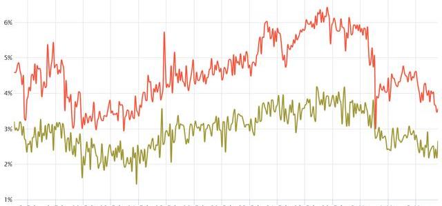 在健康的市場中,三個月期期貨年化溢價應在5%至10%之間交易,以彌補成本和相關風險。然而,當合約以低于傳統現貨市場的價格進行交易時,這表明交易員缺乏信心并被視為看跌指標。