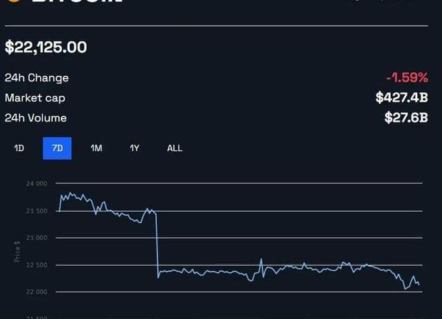 市場的反應是總市值下滑1.3%至1.06萬億美元。此外,BTC當天下跌1.6%,截至發稿時交易價格為22,125美元。
