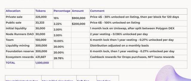 Drops將于5月21日在Polkastarter上進行IDO,本次IDO銷售總量為333,333DOP,定價為1DOP=$0.60;個人硬頂210美金,目前IDO白名單已經開放。