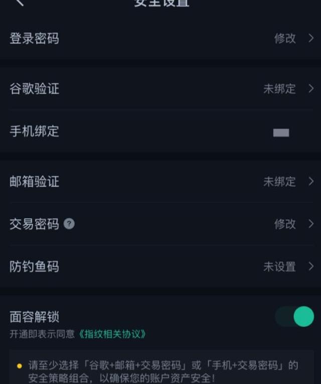 點擊自己的頭像,進入“安全設置”。至少需要完成手機綁定、交易密碼。完成“實名認證”能夠更大程度保障自己的資金安全。