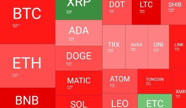 自然而然,整個市場也紛紛效仿,損失了相當一部分總市值。山寨幣大部分都涂成紅色,唯一值得注意的例外是Ripple的XRP。