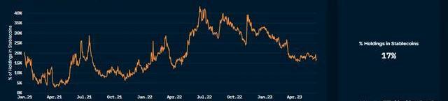 與此同時,聰明錢繼續部署他們的穩定幣,穩定幣持有比例降至Luna之前的水平: