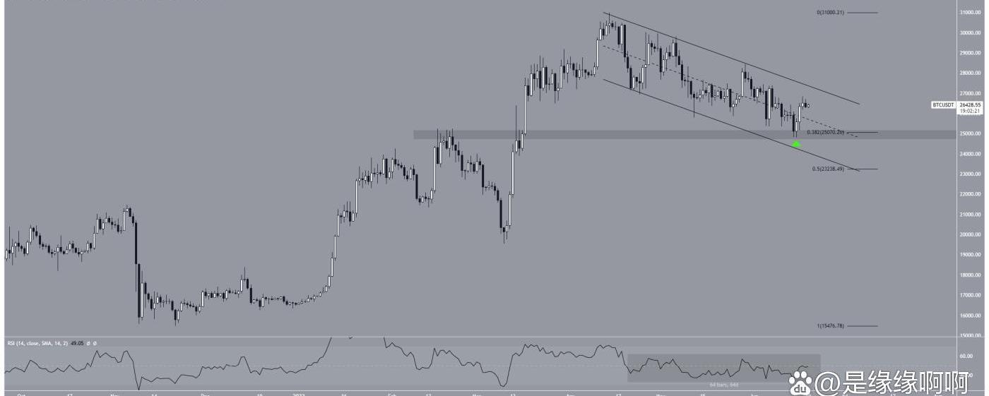 因此,這一數字將產生更多的短期上行空間。然而,一旦反彈完成,預計將再次大幅下跌,使價格至少跌至23,300美元的支撐區域,并可能跌至21,000美元。