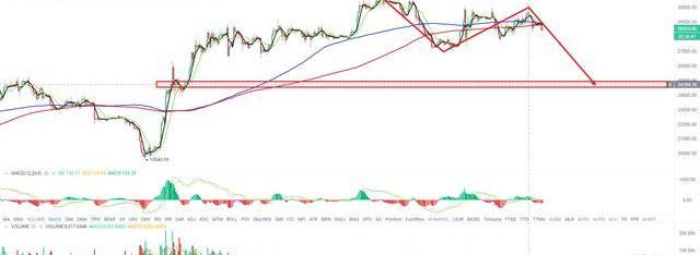 從日線走勢來看,可以看出MACD的雙線,已經臨近0軸附近,到底是回抽,還是直接下穿0軸,如何判斷?可觀察4h級別走勢圖,4h上,大餅再一次跌破233均線,之前一直圍繞該線上下波動,同時試探了兩次3w,沒有成功,大該這次跌破233均線,應該是有效跌破。其日線下方支撐區域在2.32w,觀點保持不變。因此,整體行情來看,不管后面是大跌還深度回調,但可以確認的是,短時間破3.1w是非常困難,也就是說,多方只能做些短級別的操作,空方可以多拿一拿,切莫追漲殺跌。