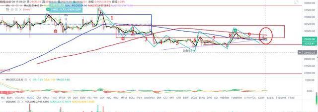 之前分析到,大餅btc行情不能追多,逢高短空。最近幾天行情一直處于橫盤階段,即在2.94w上下波動,行情非常無聊,每天振幅也在1到2個點之間,可以忽略不計,這種行情適合高拋低吸,做短差。今天行情是處于4h中樞之下,偏弱勢為主,日線上也有回抽0軸,如果不能MACD雙線是否能穿越0軸,并且看是否能站穩上去。