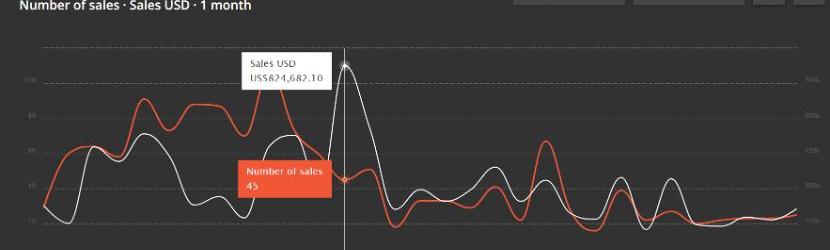 來源:nonfungible.com;2022年初LAND平均價格最高時(3月26日),當日銷售數量為45,銷售額為824,682美元,平均每筆銷售18,326美元。