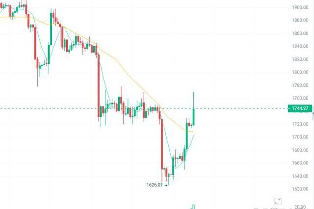 以太坊日線級別已經反彈至前期橫盤區域的關鍵壓力位1780附近,4小時圖上的其實非常明顯1780附近的位置也是空頭防守的目標點位,1小時圖上看價格已經進入箱體震蕩區域的上沿壓力位,也是前期頂部區域的下方壓力,從小結構15分鐘和5分鐘結構看目前有調整需求,回踩前期震蕩區域的下沿1730至1735區域。因此從操作策略上看價格突破1760上方之后在1780附近的區域布局空單,第一目標位置震蕩區域上沿1730附近,回踩至這個位置之后恰好又是多單入場的機會