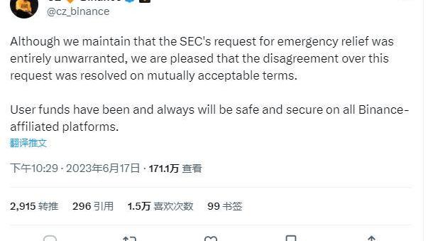 在提交給法庭的文件中,SEC決定凍結資產,這表明有必要確保Binance不會危及用戶資金或尋求將資金轉移到國外。在指控Binance首席執行官趙長鵬在訴訟中獲取Binance.US客戶資金后,美國證券交易委員會于6月6日向Binance.US提交了臨時限制令的緊急動議。監管機構指控趙通過他控制的名為MeritPeak的實體轉移了120億美元的幣安資金。