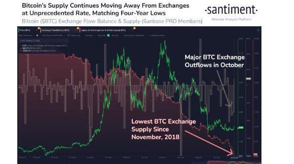 Santiment還表示,交易所的比特幣供應比例目前處于2018年以來的最低水平——2018年是上一次宏觀熊市見底的一年。“隨著比特幣在交易所的比例下降到8.3%,這是4年來的最低水平。10月份是大量資金流出的月份。”