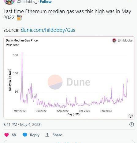 由于模因幣的狂熱,以太坊網絡費用激增。
