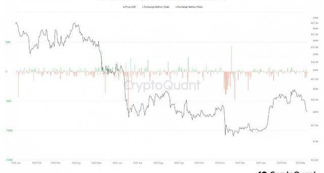 CryptoQuant的Netflow指標顯示,在3月10日,離開系統的BTC多于進入系統的BTC;在撰寫本文時,這種趨勢一直存在。
