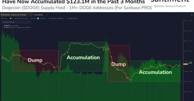 在整個增持階段,大型錢包投資者一直在繼續增持柴犬這一競爭對手。大型錢包投資者在過去三個月內增加了超過1000萬個DOGE,價值1.231億美元。