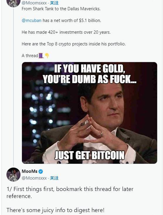 馬克·庫班是加密貨幣領域的知名人物。這位企業家和億萬富翁擁有多項加密貨幣投資。在最近的Twitter帖子中,MooMs報道了Cuban投資的八個加密項目。了解知名人士正在投資哪些項目總是沒有壞處的。這是庫班投資組合中的八枚硬幣……