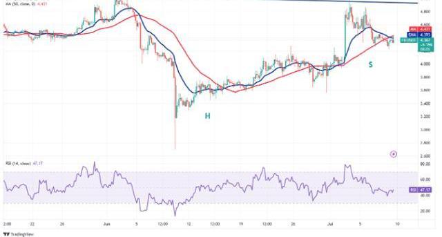 文件幣正試圖形成反向頭肩形態,該形態將在突破時完成,并收于頸線上方5美元附近。