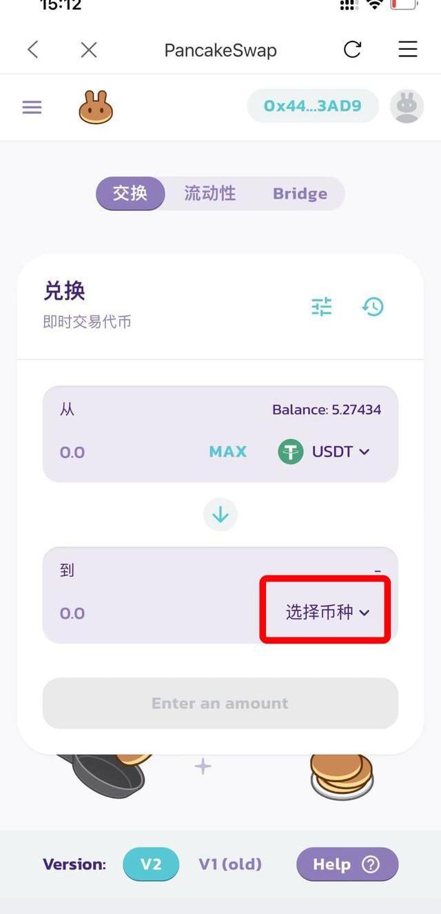2.設置需要兌換的代幣,如果搜索列表中沒有搜索到需要兌換的幣種,可嘗試輸入幣種合約地址手動添加
