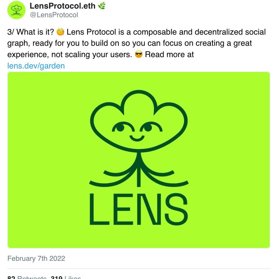 LensProtocol是一個“去中心化社交圖譜”,由著名的DeFi協議Aave團隊開發。它是一個無需許可的、可組合的協議,任何人都可以在上面開發web3社交平臺。LensProtocol基于Polygon,目前部署在PolygonMumbai測試網上。