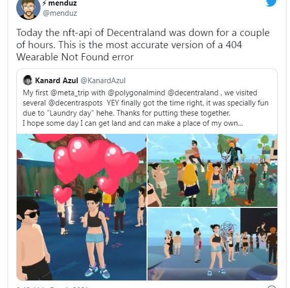 Decentraland的NFTAPI出現故障時有人就可能會出糗