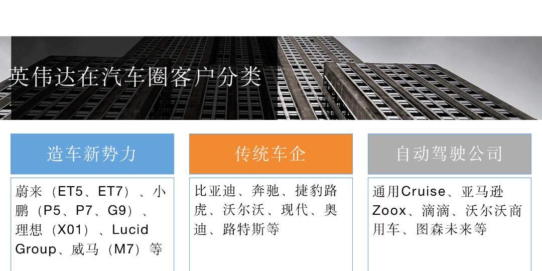 2022年,隨著蔚來ET7的量產交付,自動駕駛芯片市場開始進入高算力的英偉達時代。英偉達在汽車圈客戶大致可以分為三類:
