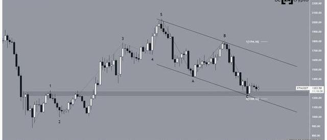 9月21日,ETH跌至1,220美元的低點并反彈。這一走勢驗證了1,250美元的水平支撐區域和通道的支撐線。此外,它使波浪A:C的比例正好為1:1。結果,很可能修正已完成。
