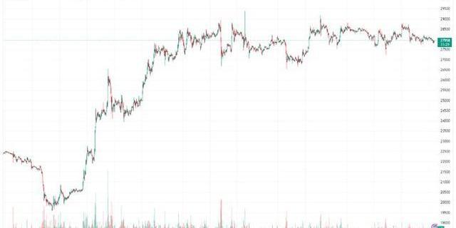 在撰寫本文時,比特幣的交易價格約為27,900美元,上周上漲1%。