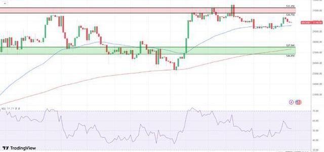 看看14日RSI,51.71的讀數反映了看漲情緒。RSI標志著突破30,750美元至31,250美元阻力帶,目標為31,500美元。然而,跌破50日均線將導致28,500美元以下和27,500美元至26,850美元的支撐區間出現。