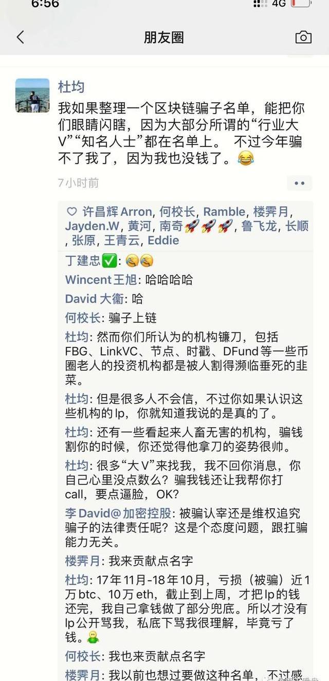 知名媒體人杜均朋友圈曬區塊鏈騙子名單,機構都已經成為了被割的對象,幣圈誰還在掙錢?