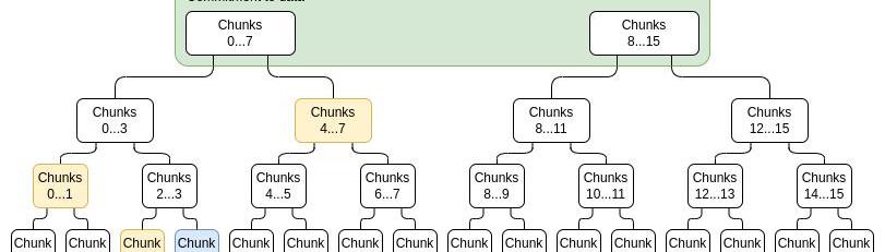 注意,為了提高效率,每個chunk不需要是一個單獨的評估;相反,我們可以裁剪樹,例如一個chunk是一組16個評估。鑒于證明的組合大小無論如何都會比這大,像這樣使chunk變大,我們損失很少。