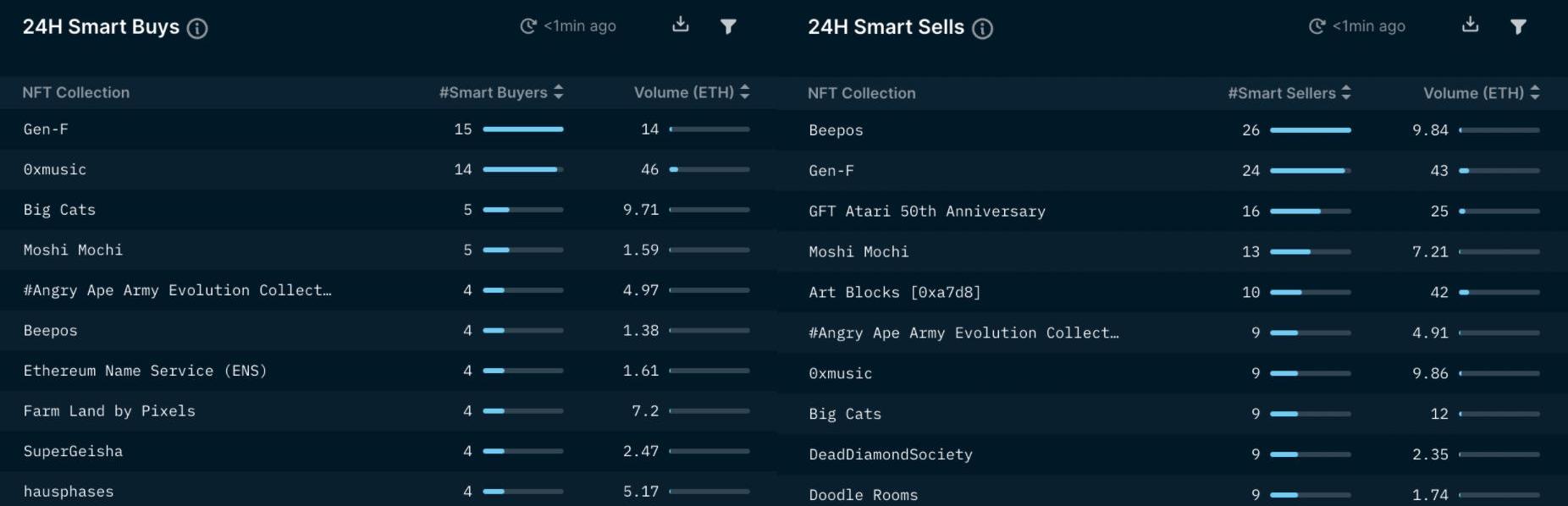 隨著每天發布NFT項目的數量,幾乎不可能跟上所有這些項目。一種策略是追隨精明的資金并關注引起他們興趣的項目,NansenNFT儀表板可以幫助實現這一點。您可以在“NFT大神模式”查看特定項目的交易數據,在“MintMaster”上查看鑄造數據,并在“NFTSmartMoney”上查看過去24小時的SmartMoney活動概覽。