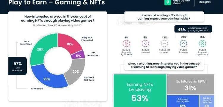 現在,對上述研究有一些批評意見:調查的選擇標準偏向于大量「感興趣」的玩家。這是因為調查的選擇標準要求人們要么擁有或曾經擁有NFT,要么聽說過它們。我們可以假設,仍然有大量的人不知道NFT是什么。因此,也許在游戲者人群中,對這個想法感興趣的人比53%少得多。然而,這并不排除有證據支持有相當一部分玩家能夠接受它。即使只有1%,人們也可以圍繞它建立一個完整的產業。