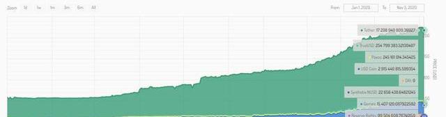 根據加密分析公司Messari的數據,從2020年8月至現在,USDT的市值大幅增長。USDT的市值在過去三個月中增加了超過50億美元。
