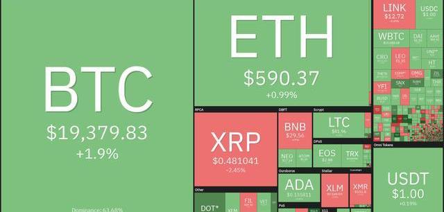 加密市場每日價格圖表來源:Coin360目前,交易員們的普遍共識是,將19500美元轉向支撐位將為觸及或突破20000美元的歷史新高打開大門。根據Cointelegraph的撰稿人MichealvandePoppe: