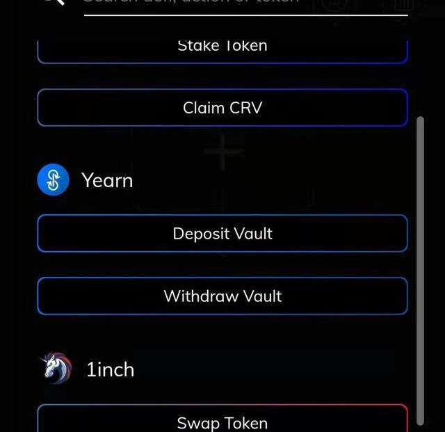 在FURUCOMBO平臺上可以進行的操作包括在UNISWAP上交易和做市;在Aave上存款,借款,贖回;在Maker上質押,鑄造DAI等;在Curve交易穩定幣,比特幣,以及做市等;在Yearn上存款到機槍池以及贖回資產;在1inch上兌換交易;