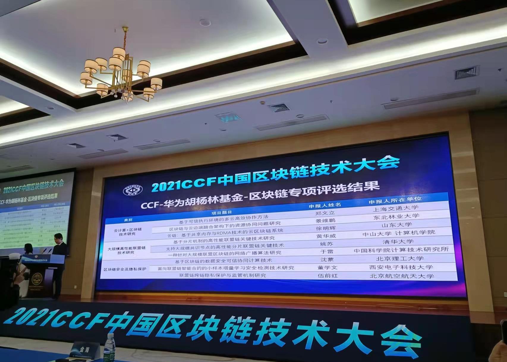 本次會議上公布了CCF-華為胡楊林基金會-區塊鏈專項評選結果。上海交通大學鄭立文團隊、中山大學黃華威團隊、北京理工大學的沈蒙團隊、東北林業大學景維鵬團隊、山東大學徐明輝團隊、清華大學姚蘇團隊、中科院計算所于雷團隊、西安電子科技大學董學文團隊以及北京航空航天大學伍前紅團隊獲選。