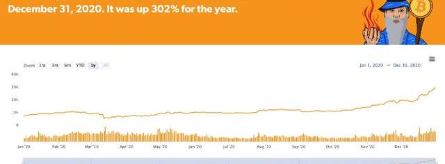 2020年12月,比特幣(BTC)在當月上漲了53.59%。