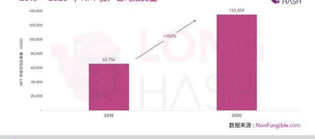 據NonFungible.com數據,2020年NFT項目日均成交量較去年增長約105%,顯示出強勁市場需求。