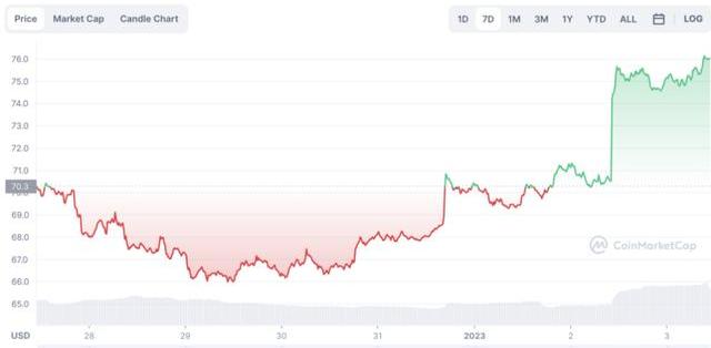 然而,今年對于LTC來說可能有所不同,因為該代幣似乎有一個良好的開端。在撰寫本文時,萊特幣的價格約為76美元,在過去7天內上漲了8%。