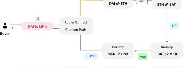 請考慮以下示例,該示例將DAI值在一系列代幣中移動,然后到達所需的LINK輸出代幣:
