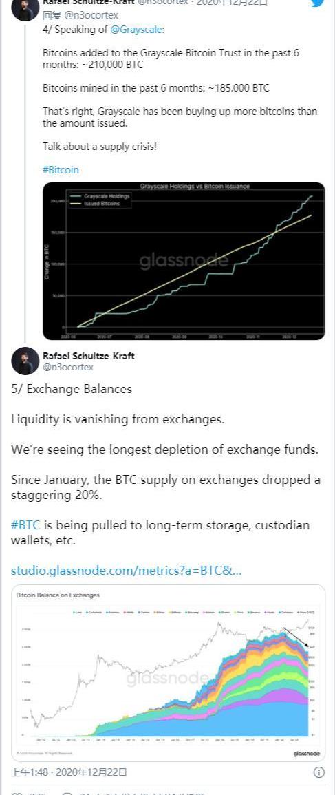“比特幣正處于供應和流動性危機中。這是極其看漲的!而且被嚴重低估了,”Glassnode首席技術官Schultze-Kraft周一在推特上補充道,“我相信在未來幾個月內,比特幣的價格將明顯反映出這一點。”
