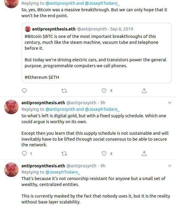 什么樣的營銷是正和,什么樣的營銷是零和是另一個問題,值得社區討論。我自然希望以太坊社區繼續重視維護道德高地。關于@antiprosynth本人的情況,我找不到任何可以歸類為“對世界不利”的策略,尤其是與我們經常看到以太坊使用的完全錯誤信息相比時,但是我是支持以太坊的,因此有偏見,因此需要小心。
