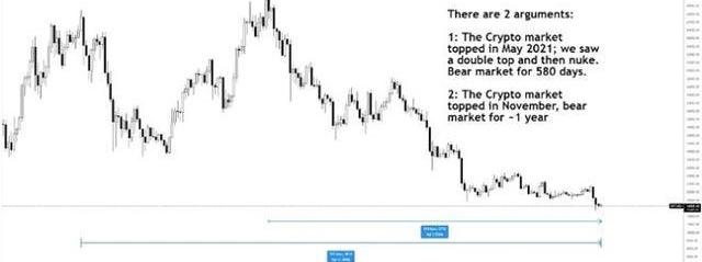 山寨幣Sherpa專家預測比特幣底部的可能價格為10,000美元,并表示他認為熊市始于2021年11月并持續了大約一年,而其他一些分析師則聲稱熊市始于2021年5月并持續了580天。