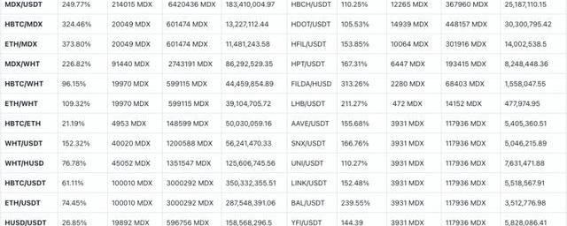 ·獎勵包含如下圖交易對,獎勵幣種包括HT和MDX兩種;