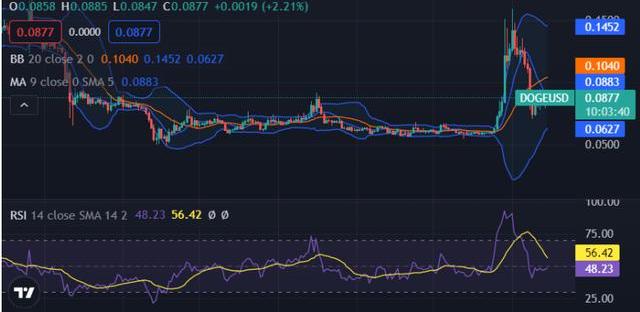 布林帶的價值如下;布林線上限觸及0.0926美元大關,而下限則觸及0.0822美元大關。RSI指數也在向中性區間回落,根據狗狗幣價格分析,該數字為46.04。移動平均線(MA)為0.0866美元,但可能很快就會上漲。