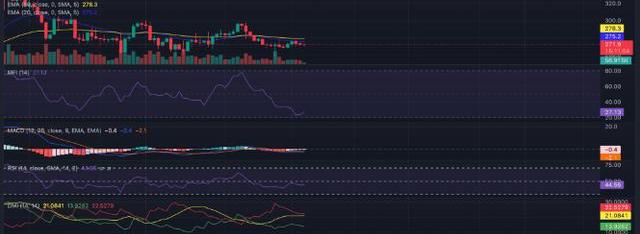 截至發稿時,BNB的資金流量指數明顯超賣,日線圖上低于50中性點。截至發稿時,其MFI為27.13。截至發稿時,相對強弱指數也處于下降趨勢中,為44.55。