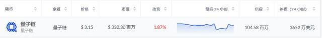 今天的Qtum實時價格為3.14美元,24小時交易量為68,389,075美元。Qtum在過去24小時內下跌了2.17%。目前的CoinMarketCap排名是#107,實時市值為328,297,032美元。它的流通供應量為104,584,954個QTUM硬幣,最大數量為104,584,954個。供應107,822,406個QTUM代幣。