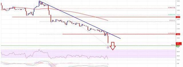 Sol價格甚至跌破10美元和100條簡單移動平均線。價格低至9.66美元,目前正在鞏固虧損。與比特幣和以太坊不同,在10美元下方有明顯的強烈看跌跡象。