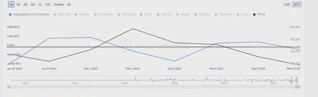 自2月2日以來,比特幣鯨魚交易量一直在下滑,恰逢從23,800美元回調4%。