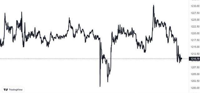 在撰寫本文時,ETH的交易價格約為1,200美元,上周下跌1%。